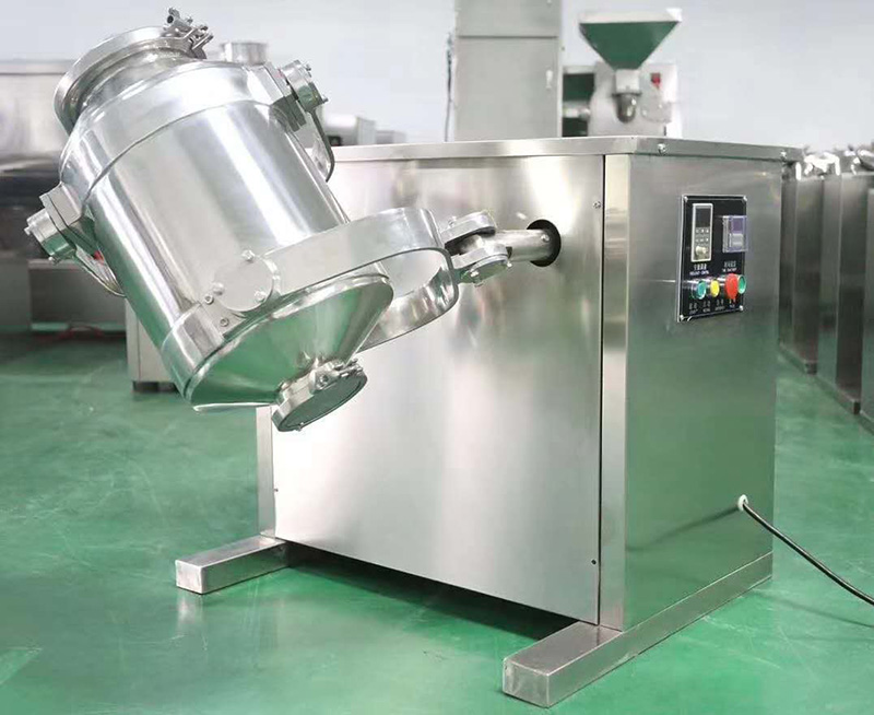 三维运动混合机用于制药、化工、食品、轻工、电子、机械、矿冶、国防工业以及各科研单位的粉状、颗粒状物料的高均匀度混合。该机的混合筒多方向运动,物料无离心力作用,无比重偏析及分层、积聚现象,各组分可有悬殊的重量比,混合率达99.9%以上,是目前各种混合机中的一种较理想的产品。筒体装料率大,最高可达80%(普通混合机仅为40%),效率高,混合时间短。