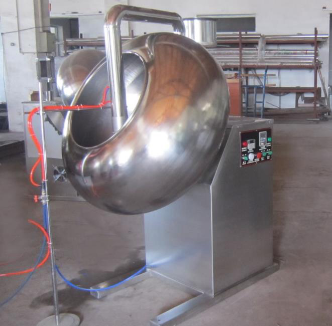 本机是供制药工业中将成型的芯片进行均匀地外层包衣及抛光的机械。亦可用于食品工业中糖果机制丸或包衣。 包衣抛光后的糖衣片,其有色泽光亮的表面,其表层糖粉结晶后所产生完整的固结包层,亦可防止芯片氧化变质,受潮或挥发,又可遮盖芯片服用不适之味,达到药片便于识别及缓和在人体肠胃中的溶释等作用。