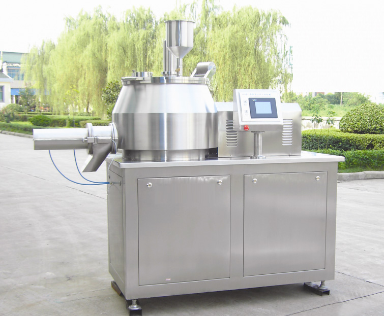 粉体物料与粘合剂在圆筒形容器中由底部混合浆充分混合成湿润软材,然后由侧置的高速粉碎桨切割成均匀的湿颗粒。